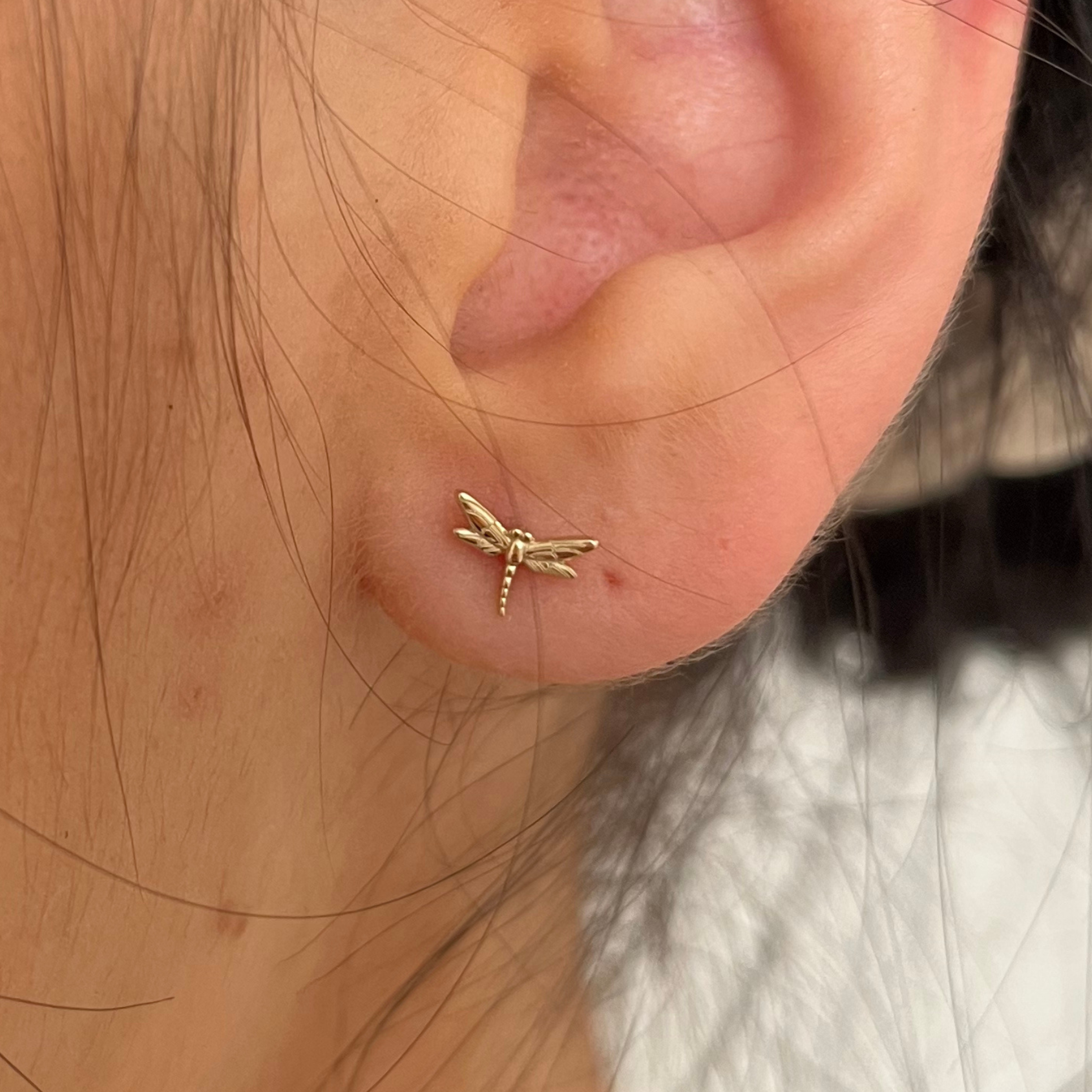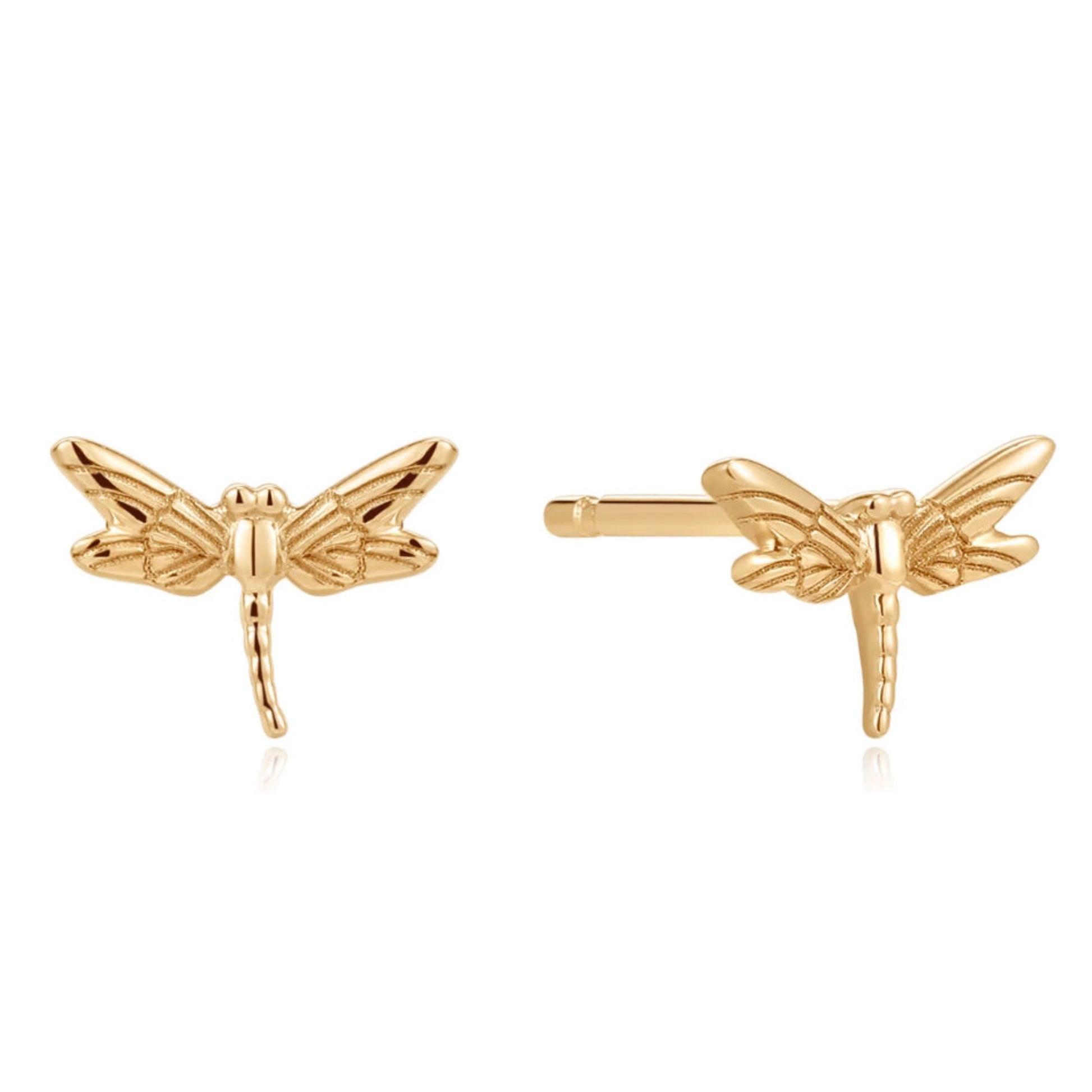 Dainty and mystical dragonfly studs. Made from 14k Solid Gold these are ideal for wearing every day without tarnish or fading.