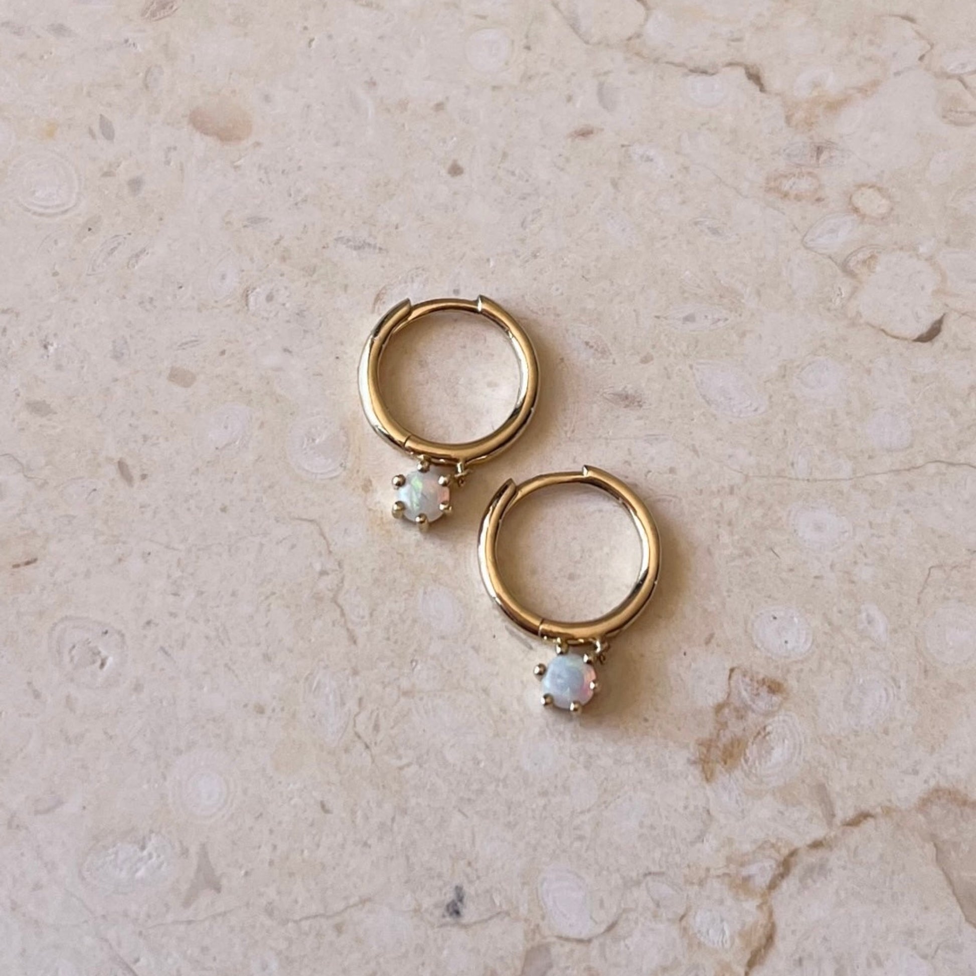 Elegant and simple our 14K Solid Gold Opal Pendant Huggies will make the perfect everyday piece to wear. Made from 14k Solid Gold these are ideal for wearing every day without tarnish or fading.
