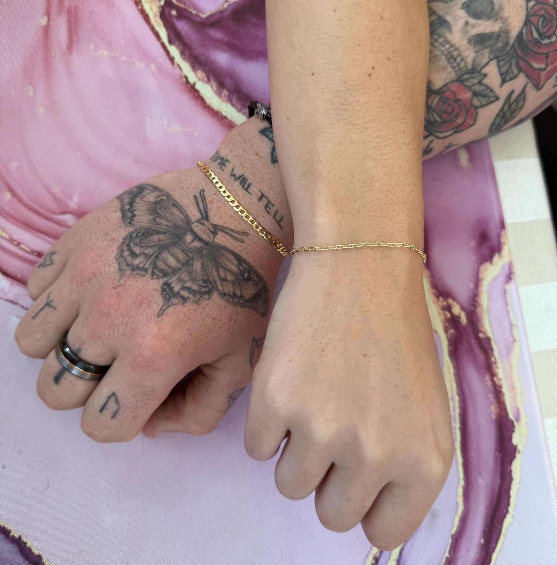 Book an appointment and create a timeless piece with our high-quality permanent jewellery. Choose from a stunning selection of sterling silver and 14K gold-plated chains and charms, designed for lasting beauty and everyday wear.
